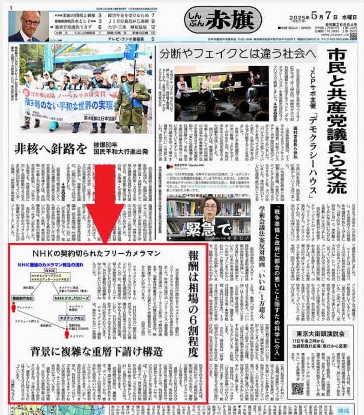 (記事抜粋)NHK番組制作に携わるドキュメンタリー撮影のフリーカメラマンが契約を打ち切られる事件が起きました。